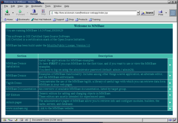 In case of any problems, check the Tomcat and MMBase log files in the directory /usr/local/tomcat/logs/ for hints.